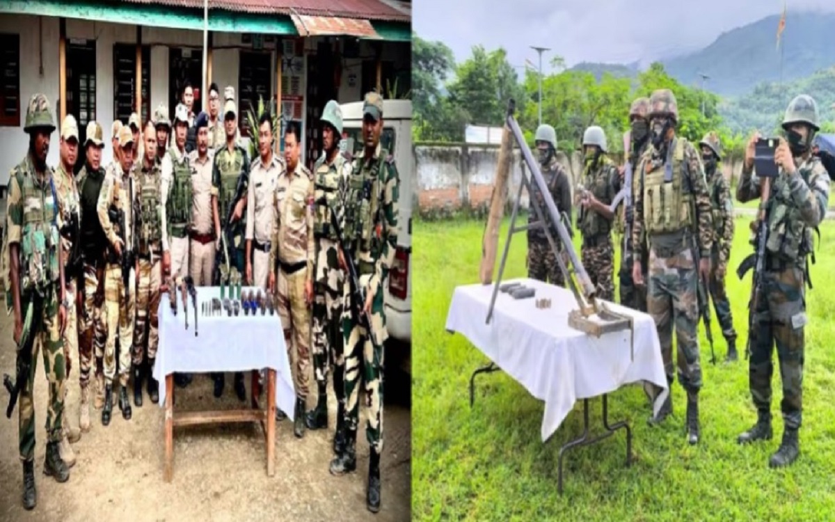 A vast cache of guns and ammunition was recovered as a result of security personnel conducting area domination exercises and search operations in the vulnerable and outlying areas of Manipur’s hill and valley districts. The potential armament concealed in the area was further highlighted by the discovery of 40 live rounds of ammunition and two AK-47 magazines during the search. Additionally, the troops discovered two cell phones, one charger, and three homemade explosive devices.