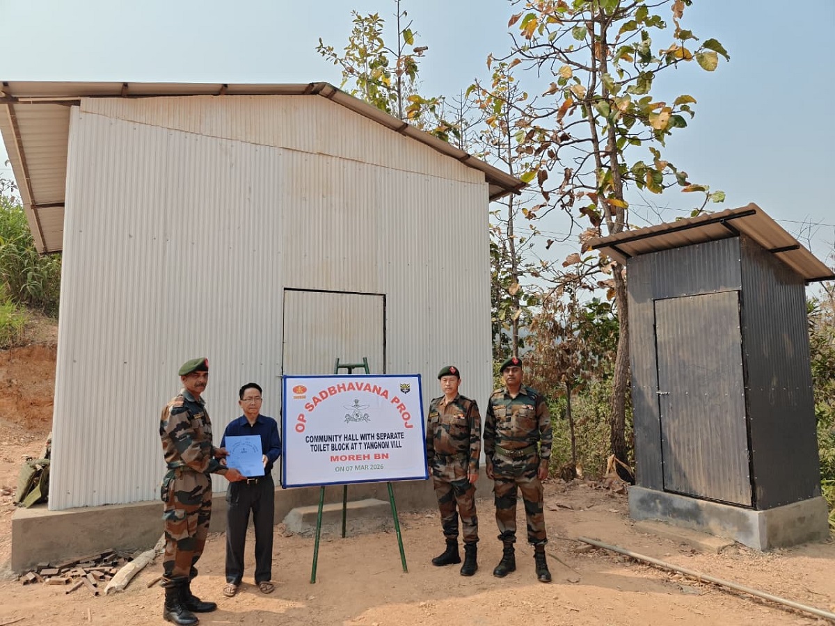 On International Women’s Day, a new community centre with a separate toilet block was inaugurated in N Gangpijang Village, T Yangnom, Tengnoupal District. This initiative, part of Operation Sadbhavana by Assam Rifles for the Financial Year 2025–26, was officially handed over to local authorities during a ceremony attended by around 40 participants, including village leaders and Civil Society Organisation (CSO) representatives, emphasizing the significance of inclusive development. The community centre aims to serve as a central hub for social gatherings, community meetings, educational programmes, and developmental activities, thereby enhancing local engagement and interaction. The installation of a separate toilet block is expected to improve hygiene standards and contribute to overall health within the village. This facility aligns with efforts to support women’s welfare by providing improved sanitation and dedicated spaces for community development.
