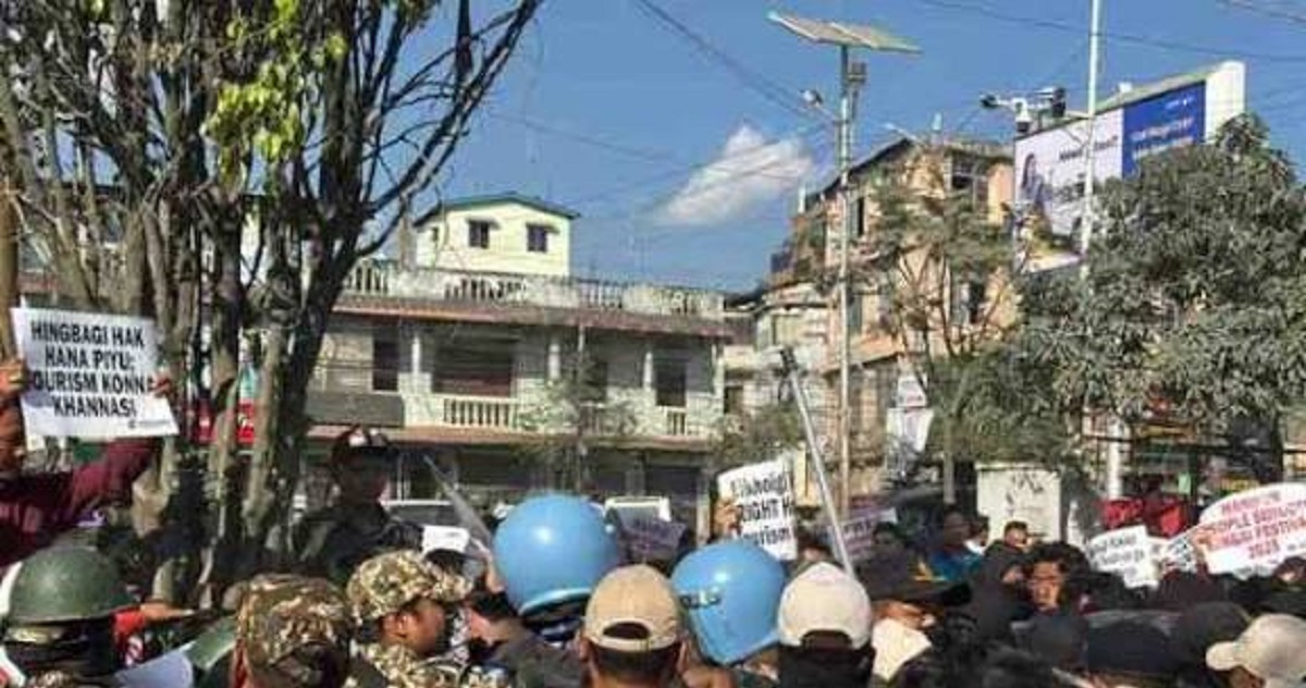 Violent confrontations broke out between security forces and internally displaced persons at Khurai Lamlong in Imphal East on November 21, as protesters demonstrated against the staging of the Sangai Festival amid the state’s ongoing humanitarian crisis.The clash intensified when demonstrators attempted to march towards the festival venue, leading security personnel to deploy tear gas shells to disperse the advancing crowd. Three police officers sustained injuries during the melee, whilst two were detained by protesters.