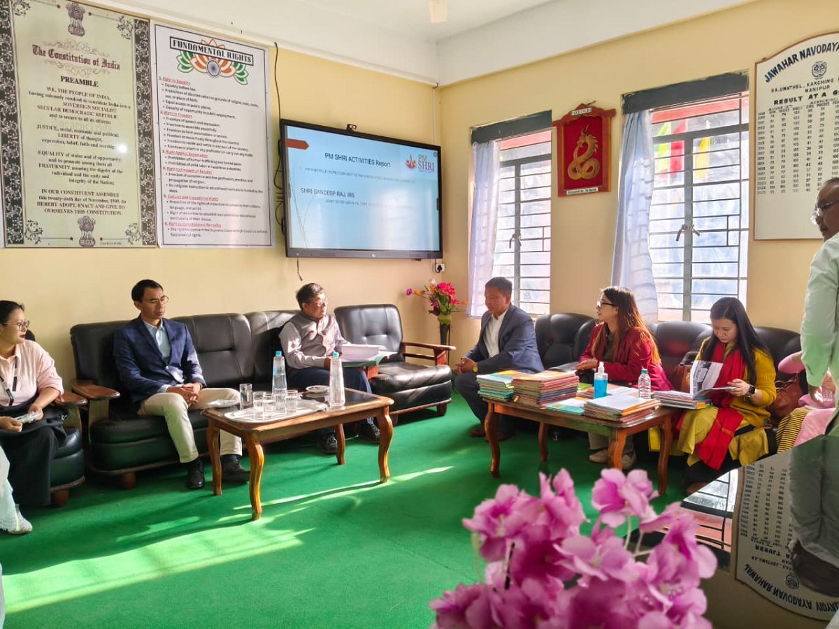 Sandeep Raj, Joint Secretary and Financial Adviser, Department of Atomic Energy, visited schools covered under the PM SHRI (Pradhan Mantri Schools for Rising India) scheme in Kakching district. During the visit, Sandeep Raj conducted inspections at Kakching Higher Secondary School and Jawahar Navodaya Vidyalaya, Umathel. He was accompanied by Ng. Bhogendra Meitei, MCS, Director of Education (S); Renuka Khumukcham, MCS, Additional State Project Director, Samagra Shiksha (Secondary); P. Shantikumar, MCS, Additional District Magistrate, Kakching; along with officials of the District Administration, Kakching. Later on, Sandeep Raj witnessed cultural performances presented by the students of Jawahar Navodaya Vidyalaya, Umathel.
