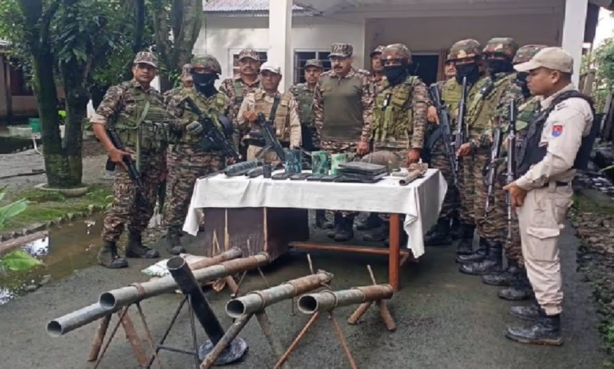 The discovery of a sizable arsenal of weapons and ammunition from two different sites in Manipur on Tuesday marked a major victory for security forces in their fight against insurgency. The following weapons were found by the forces in the Songpi village area under Churachandpur Police Station, Churachandpur district: One M79 grenade launcher, six single-barrel rifles, four 9mm handguns with three magazines, and one magazine-equipped.22 rifle. In the meantime, Sekmai Police Station, Imphal West district, conducted another coordinated operation in the Nobap Makhong neighborhood of Chanbirok Hill. A sizable cache of locally made weapons and explosives was seized as a result of the operation.