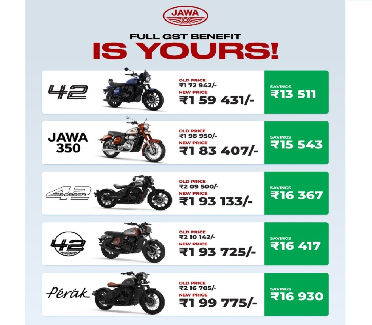 “The government’s bold and timely GST reforms will bring a tectonic shift for the greater good, echoing the historic transition from 2-stroke to 4-stroke engines. Classic Legends welcomes the GST rationalisation, especially the reduced rate of 18 percent for under-350cc motorcycles, which covers our 293cc and 334cc Jawa and Yezdi performance classics,” said Anupam Thareja, Co-founder of Jawa Yezdi Motorcycles. “While it raises the tax burden for higher cc motorcycles such as our 652cc BSA Gold Star, we accept it as the hallmark of progressive taxation. The trade-off makes mid-segment bikes accessible to a larger rider community — a win for India’s motorcycling culture. We thank the Hon’ble Finance Minister for the fresh impetus for demand that will energise the economy amid a slowdown and global tariff wars. Decades ago, our brands faded due to a policy shift; today, policy foresight is helping restore their legendary stature. We will pass on 100% of the GST benefit to our customers. Coinciding with the festive season, we are telling young Indians who aspire to own a true iconic performance motorcycle: Your time is now,” he added.