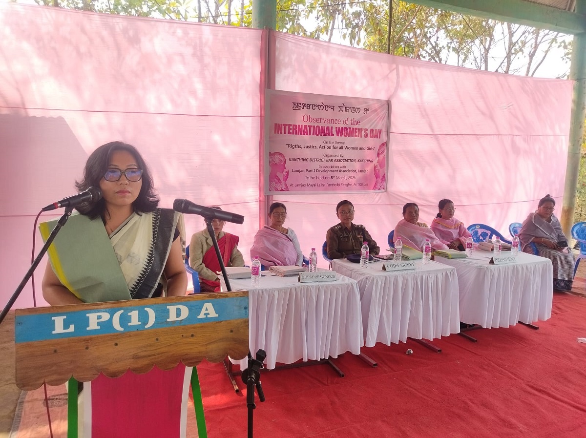 On International Women’s Day, a program themed “Rights, Justice, Action for All Women and Girls” was organized at Lamjao Mayai Leikai Community Hall in Kakching district by the Kakching District Bar Association and Lamjao Part 1 Development Association. The event was attended by Khundrakpam Hemabati, the Sub-Divisional Police Officer of Kakching, as the chief guest, with Thounaojam Mema, Vice President of Lamjao Apunba Meira Paibee Lup, presiding over the function. Key guests included Vice Presidents Yumnam Bidyapati and Urikhinbam Shantibala, and secretaries Sorolhaibam Inaobi Devi, Mayengbam Memcha Leima, and Urikhinbam Sanajaobi. Senior Advocate Nongmaithem Madhu presented the keynote address, while Advocate Kshetrimayum Sarankumari addressed domestic violence against women. Advocate Taibangjam Geetdev Meitei discussed the Prohibition of Child Marriage Act. The event emphasized legal awareness and the significance of protecting the rights and dignity of women and girls.