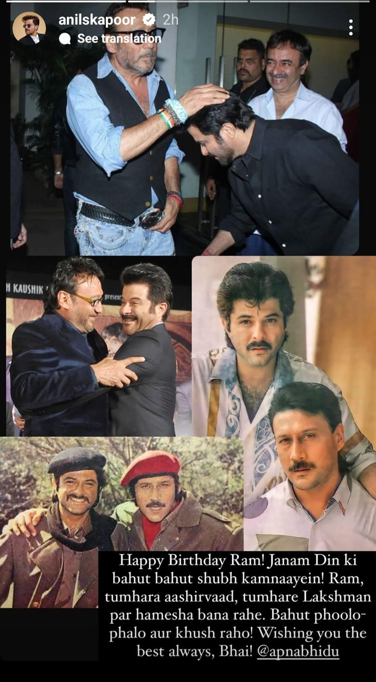 Actor Anil Kapoor took to his Instagram handle to refer a special post for his ‘Ram Lakhan’ co-star Jackie Shroff on his birthday.