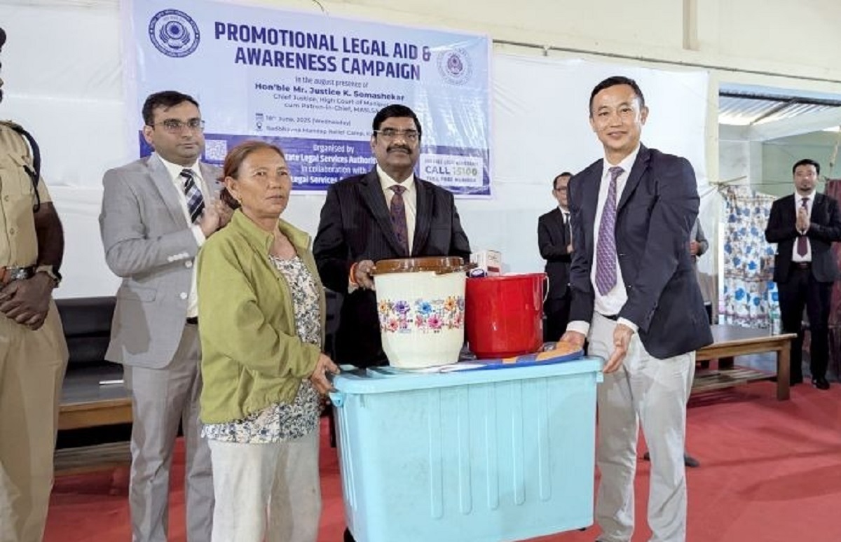 In a powerful outreach effort to promote justice and dignity for displaced families, Justice K. Somashekar, Chief Justice of the High Court of Manipur and Patron-in-Chief of the Manipur State Legal Services Authority (MASLSA), visited the Mandop relief camp in Ward No. 11, Kangpokpi Town, on Wednesday. The visit was part of MASLSA’s ongoing Promotional Legal Aid and Awareness Campaign, aimed at ensuring legal inclusion and fundamental rights for vulnerable communities. Accompanied by Justice Alek Muivah, other MASLSA members, and its Secretary, Justice Somashekar engaged directly with the residents, officials, and volunteers at the camp, where 38 displaced families have been taking shelter due to ongoing ethnic unrest in the region. In his address, the Chief Justice reaffirmed the judiciary’s unwavering commitment to upholding constitutional rights and guaranteeing free legal aid, particularly to tribal communities and the marginalised. “Equality before the law is not just a principle—it is a promise we must uphold in every corner of our state,” he stated.