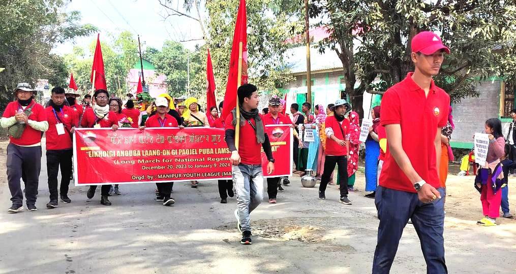 On the 4th Day of the Long March of Manipur Youth League (MAYOL) after spending a night at Oinam Law College today was headed towards Bishnupur District and reached Ningthoukhong Keithel today afternoon.