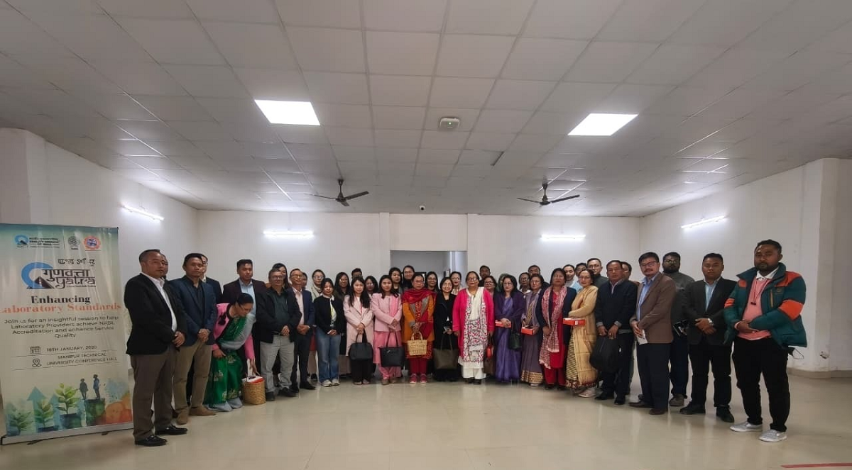 The awareness programme on NABL Accreditation, held at Manipur Technical University (MTU) under the Gunvatta Yatra Initiative of the Quality Council of India (QCI), highlighted the limited number of NABL-accredited laboratories in the State as a significant concern. Organized by the National Accreditation Board for Testing and Calibration Laboratories (NABL) and hosted by MTU’s Department of Civil Engineering, the event aimed to educate industries, laboratories, and academic institutions on the importance of NABL accreditation in achieving quality, technical competence, and global acceptance of testing results. Ashutosh Debnath, NABL Consultant, presented on the accreditation process, eligibility criteria, and the benefits, emphasizing the urgent need to enhance quality infrastructure due to the scarcity of accredited laboratories in the State. Over 50 professionals participated, including representatives from the Regional Institute of Medical Sciences (RIMS), the Directorate of Environment and Climate Change, MTU, Dhanamanjuri University (DMU), and other institutions. Participants pledged commitment to quality and standardization through the “Quality Bharat Pledge.” Kosygin Leishangthem, Course Coordinator and IPR Cell Nodal Officer at MTU, stressed the importance of industry-academia collaboration and aligning practices with global standards. The programme concluded with an interactive session and a vote of thanks from the organizers, recognizing the contributions of NABL, QCI, and all involved.