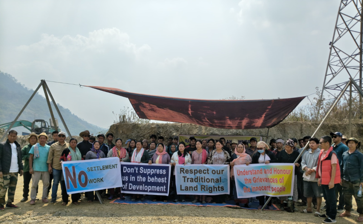 Members of the Railway Affected Landowners Association from Karuangmuan Nungtek Village organized a significant protest on Saturday to contest land encroachment issues identified at chainage numbers 87387-88500. The demonstrators, brandishing flex banners, demanded recognition of their traditional land rights and condemned perceived authorities’ oppression, articulating slogans such as “No settlement, no work,” “Respect our Traditional Land Rights,” and “Don’t Suppress us in the behest of Development.”