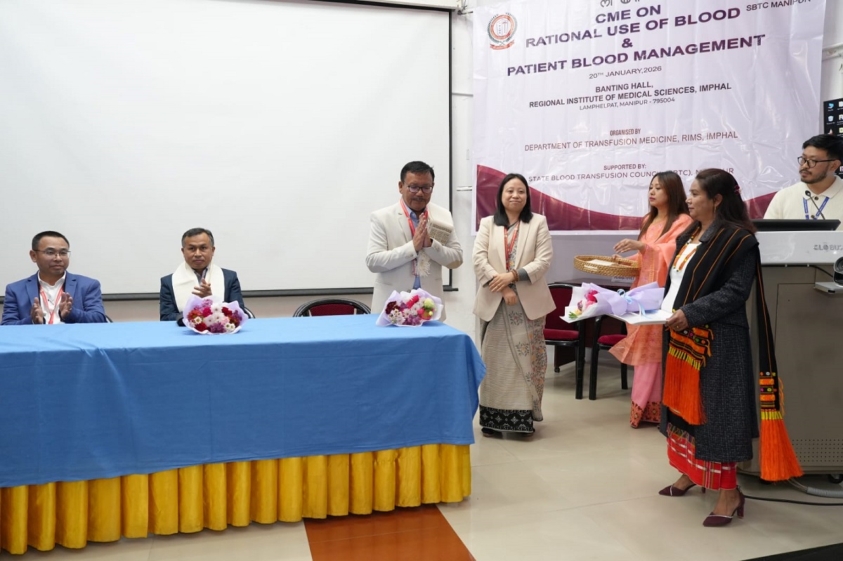 The Department of Transfusion Medicine at the Regional Institute of Medical Sciences (RIMS) in Imphal, in partnership with the State Blood Transfusion Council of Manipur, hosted a Continuing Medical Education (CME) programme titled “Rational Use of Blood and Patient Blood Management” on a Tuesday at Banting Hall, RIMS. The event was inaugurated by Prof. G. Sunil Kumar Sharma, the Director of RIMS, who served as the Chief Guest. He was joined by Prof. N. Sanjib Singh, the Medical Superintendent of RIMS Hospital, in the role of President, and Prof. L. Rajesh Singh, the Dean (Academics) of RIMS, as the Guest of Honour.
