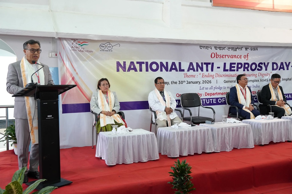 The Department of Dermatology, Regional Institute of Medical Sciences (RIMS), Imphal, observed National Anti-Leprosy Day at the General OPD Complex, RIMS Hospital, on the theme “Ending Discrimination, Ensuring Dignity.” The programme was part of the nationwide initiative to raise awareness and strengthen efforts towards leprosy elimination. Prof. G. Sunil Kumar Sharma, Director, RIMS, attended as Chief Guest, while Prof. N. Sanjib Singh, Medical Superintendent, presided over the function.