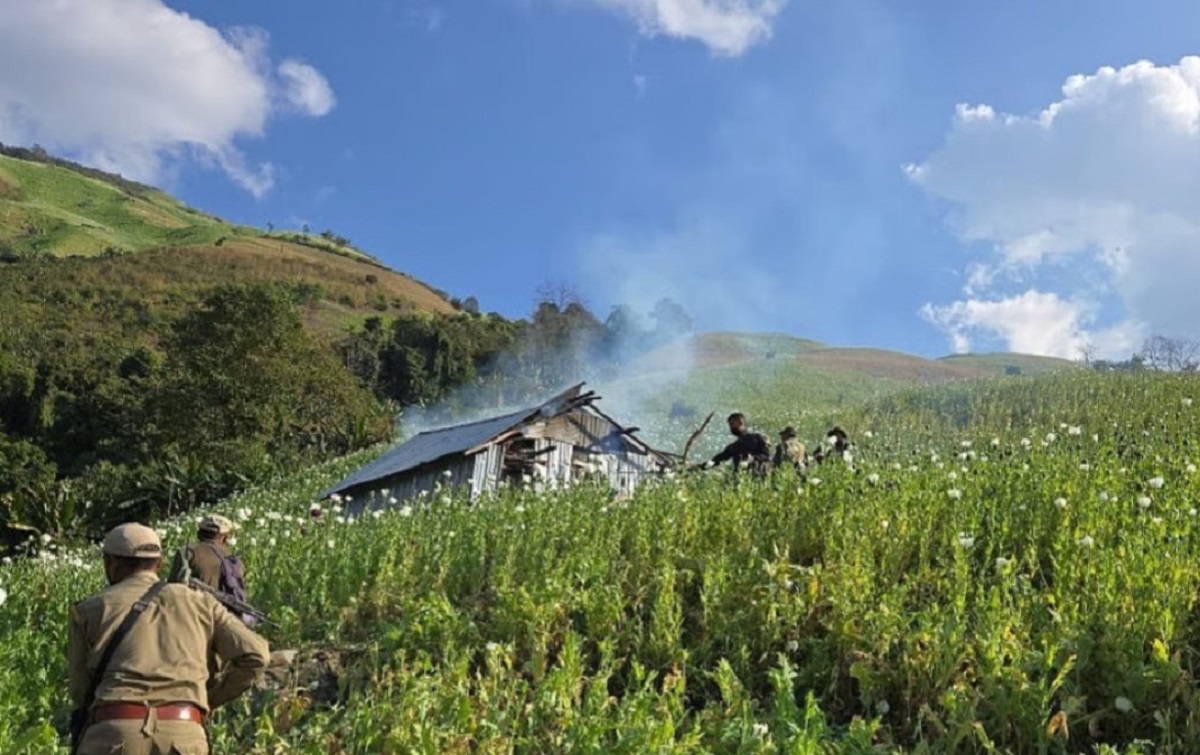 A major operation against illegal poppy farming was carried out in Manipur’s Kangpokpi district, where security forces destroyed around 67 acres of illicit cultivation spread across several hill locations. The information was shared in an official statement issued by Manipur Police on Monday.According to the police, the destruction drive was carried out throughout Friday and Saturday. It included a joint team of state police personnel, central security forces, the Narcotics Control Bureau and officials from the Forest Department.