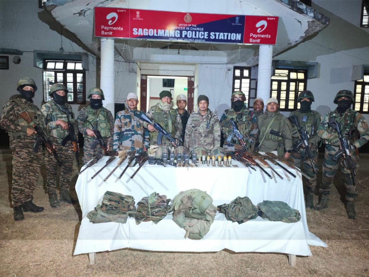 A significant cache of arms and ammunition was seized by security forces in Manipur during two separate operations, as reported by police on Saturday. The first recovery occurred on Friday in the areas surrounding Ngairangbam and Khongakhul villages, under the jurisdiction of Patsoi Police Station in the Imphal West district. This operation yielded a modified .303 rifle with its magazine, a locally manufactured Single Barrel Breech Loading (SBBL) gun, five pistols each accompanied by a magazine, an air pistol, one grenade, 20 rounds of .303 ammunition, a Baofeng hand-held radio with a charger, and a bulletproof jacket cover.