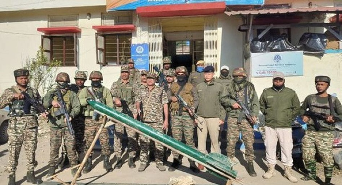 The discovery formed part of a broader security operation across multiple districts. In Kangpokpi, forces recovered a significant stockpile of weapons near Songlung village, including a German-made rifle, two bolt-action rifles, four pull-mechanism rifles, an improvised mortar, hand grenades, detonators and a radio set.