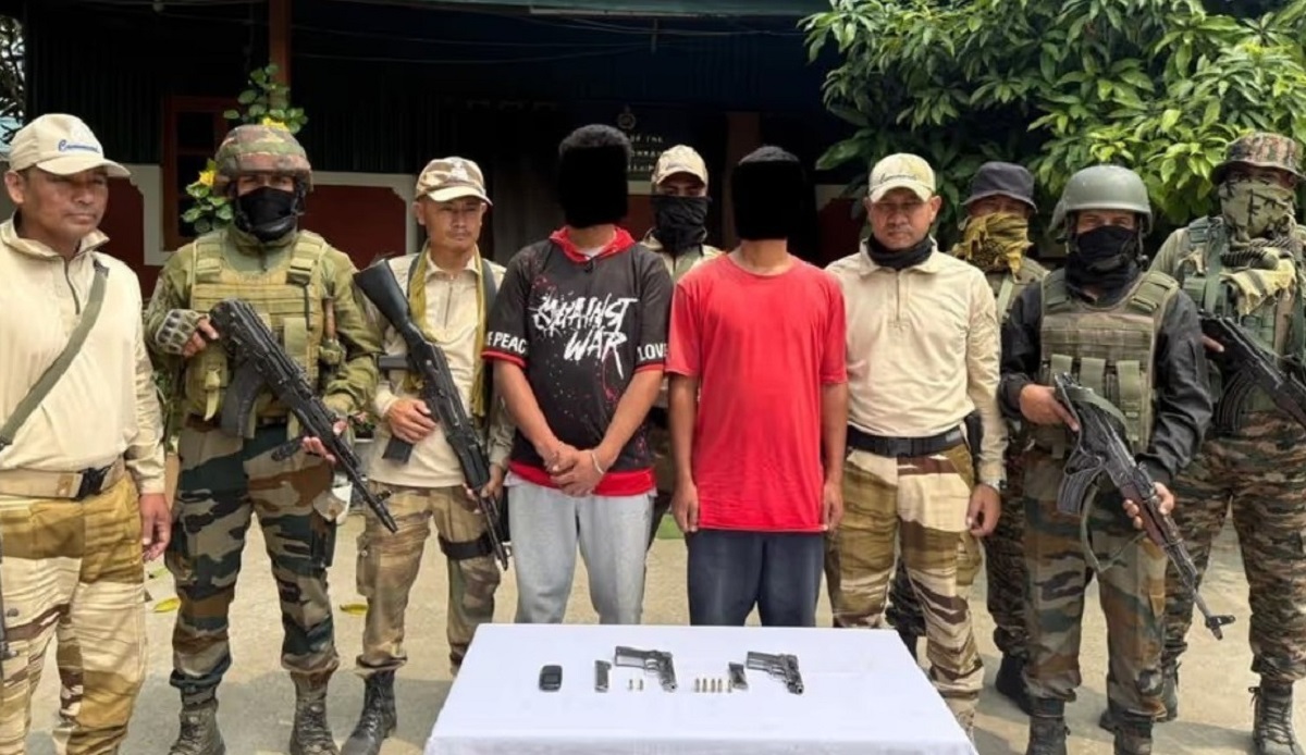 According to police on Thursday, security authorities in Manipur detained seven terrorists from many districts, including Thoubal, Kakching, Bishnupur, Churachandpur, and Imphal East, who were connected to several banned groups. Two active PLA cadres from Leirongthel Prita in Thoubal, RK Mubisana Meitei (47), and Moirangthem Naresh Singh (28), were among those detained. They were accused of engaging in extortion. They were found to have a 9mm and a.32mm handgun and seven live rounds.